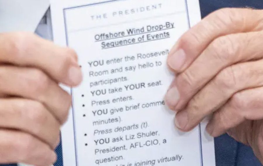 Ο Πρόεδρος της υπερδύναμης των ΗΠΑ αποκάλυψε ένα «σκονάκι» που είχε με βασικές οδηγίες για το πώς πρέπει να ενεργήσει, κατά τη διάρκεια μιας συνάντησης με στελέχη της αιολικής βιομηχανίας των ΗΠΑ στον Λευκό Οίκο!