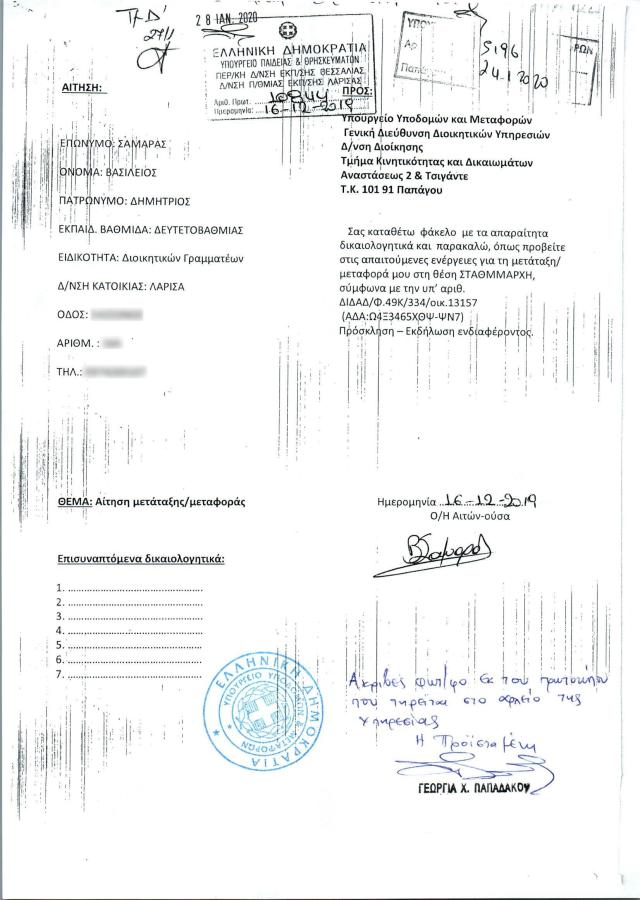 Ο σταθμάρχης Βασίλης Σαμαράς είχε επιχειρήσει να μεταταχθεί στον ΟΣΕ ως σταθμάρχης με αίτησή του στις 16 Δεκεμβρίου του 2019. Τι άλλαξε αργότερα;