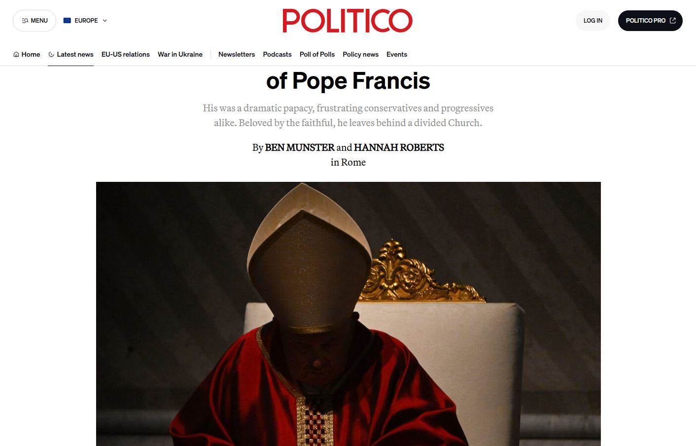 Όπως και να ’χει, μεγάλο μέρος του δράματος της παποσύνης του ήταν ζήτημα ελίτ. Στο θάνατό του, απολάμβανε ποσοστά αποδοχής ανάμεσα στο 1,4 δισ. καθολικών του κόσμου που θα ζήλευαν οι περισσότεροι πολιτικοί, καταλήγει το Politico.