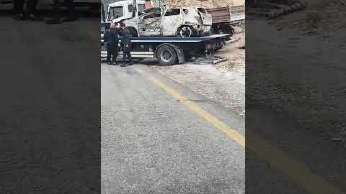 Το φλεγόμενο τζιπ με το οποίο διέφυγαν οι δράστες μετά την εν ψυχρώ δολοφονία του Γιάννη Λάλα